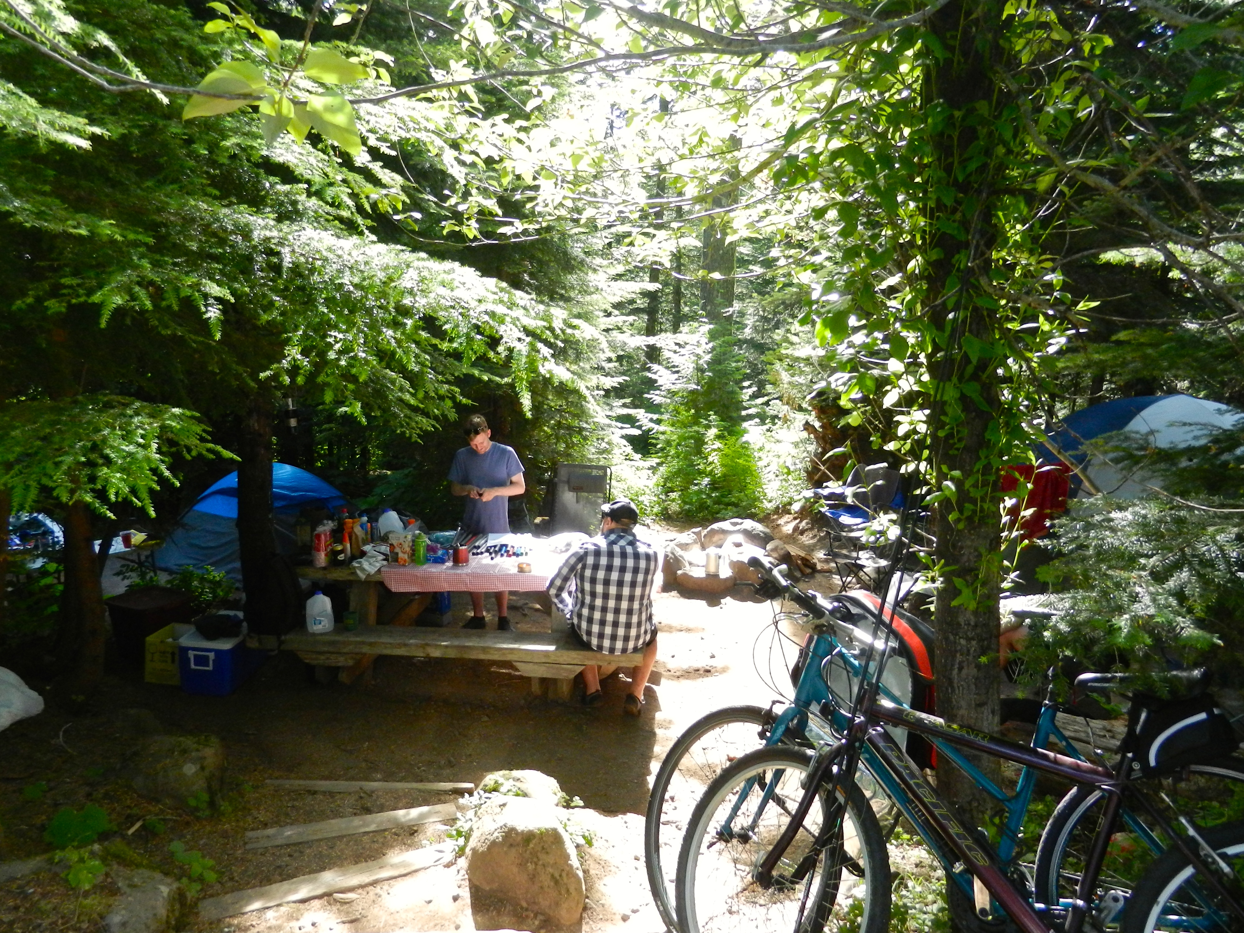 When we got back to our site we started setting up camp. While we had been checking out the view, a few more friends had arrived. In total, there were six of us. We were staying in the RV. Our friends set up two tents, one on each side of the campfire.