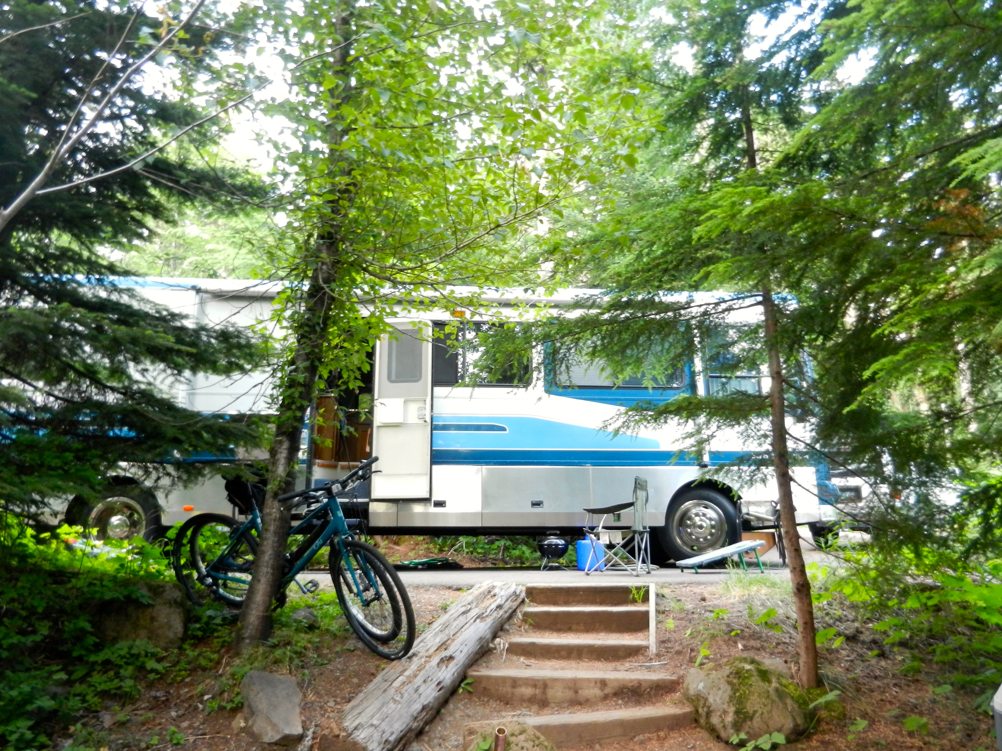 When we finally got to our campsite we realized that while it really was 80 feet long, that was 80 feet of curve, not a straight driveway. This made parking a bit tough but Brandon handled it like a pro. We made it! Happy Birthday America!