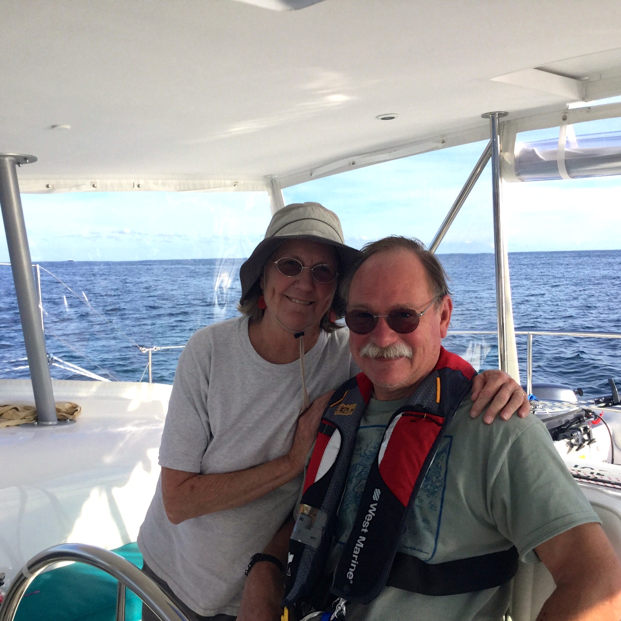 Also on board are Captain Ralph and his wife Arlene. Ralph is a professional boat captain and will ensure that the boat and everyone on board arrives safely. I’ve heard that Arlene is a fantastic cook and keeps everyone well-fed.