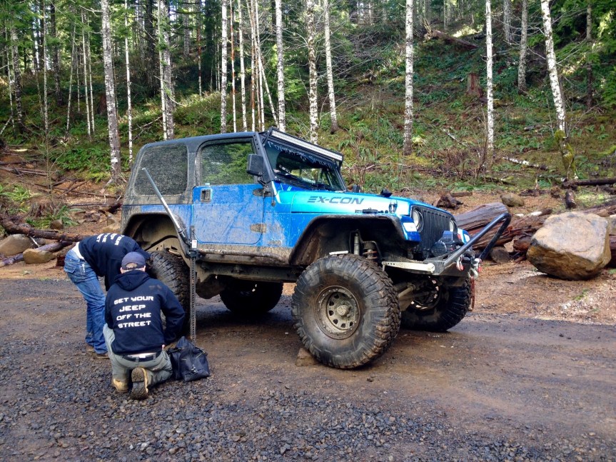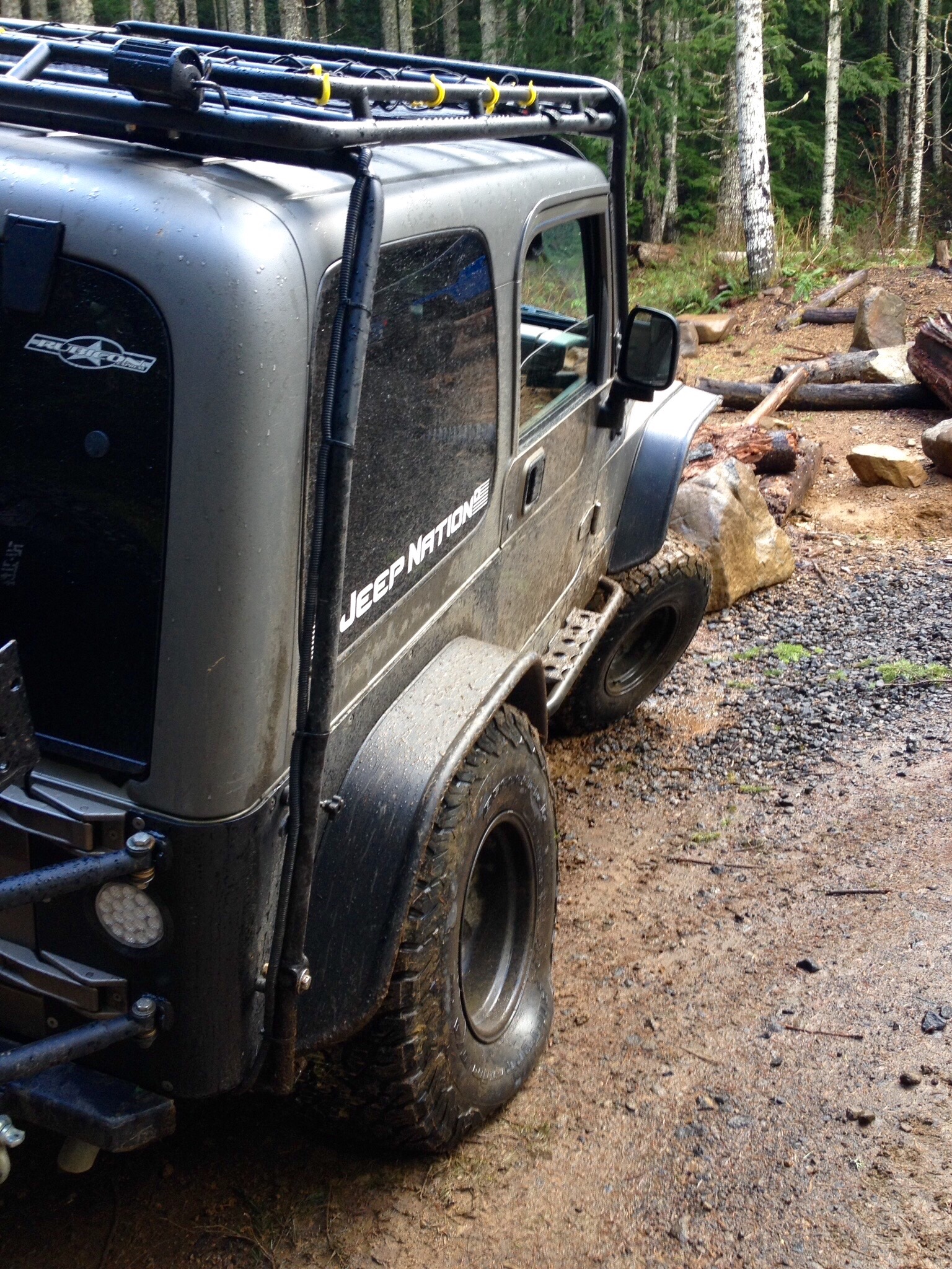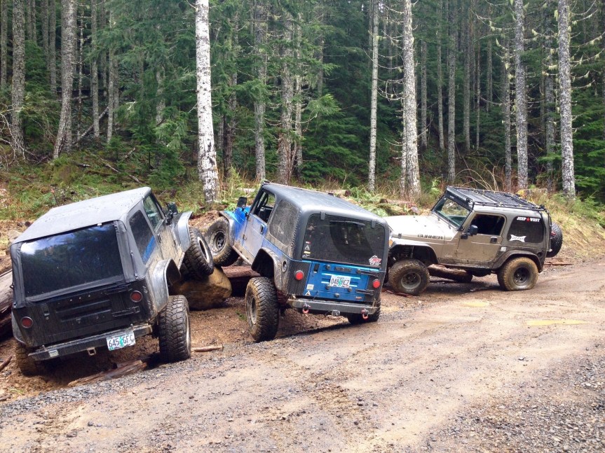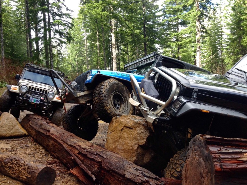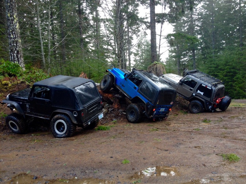 So right before we left, and I mean like 7 days prior to rolling out, I was eager to go test out the new “Magic Ride” on the trails. I knew I couldn’t get too rowdy, I couldn’t risk breaking anything so close to our departure. I still planned on marrying Jenny at the end of the first leg of this trip and found it wise to to take it easy. That wouldn’t stop me from getting out one last time. So back to Browns Camp for us! I had asked a couple of heavy hitters from the Jeep group if they could show us around for one last time on some of the easier trails to get some nice pictures and just have fun. To my chagrin they accepted! So we met up one rainy ass Oregon morning to do some wheeling!