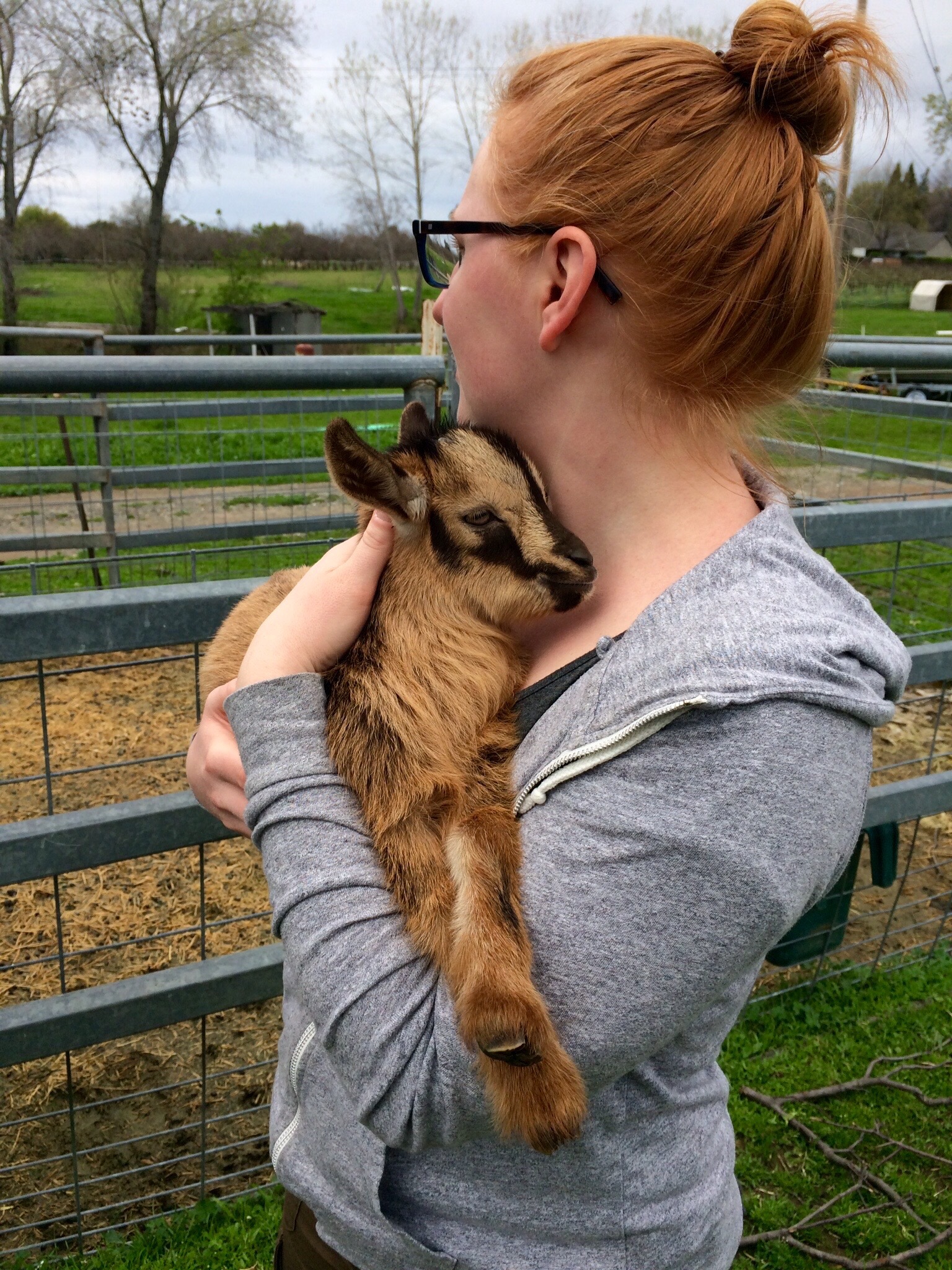 Coleman’s lovely girlfriend Kelly with another adorable baby goat. Coleman is raising the goats to be friendly with people so he encouraged us to hold and cuddle them. He actually goes into their pen and just lays down with them. He says they give great back massages because they like to dig with the tiny numbs where their horns will eventually grow in.