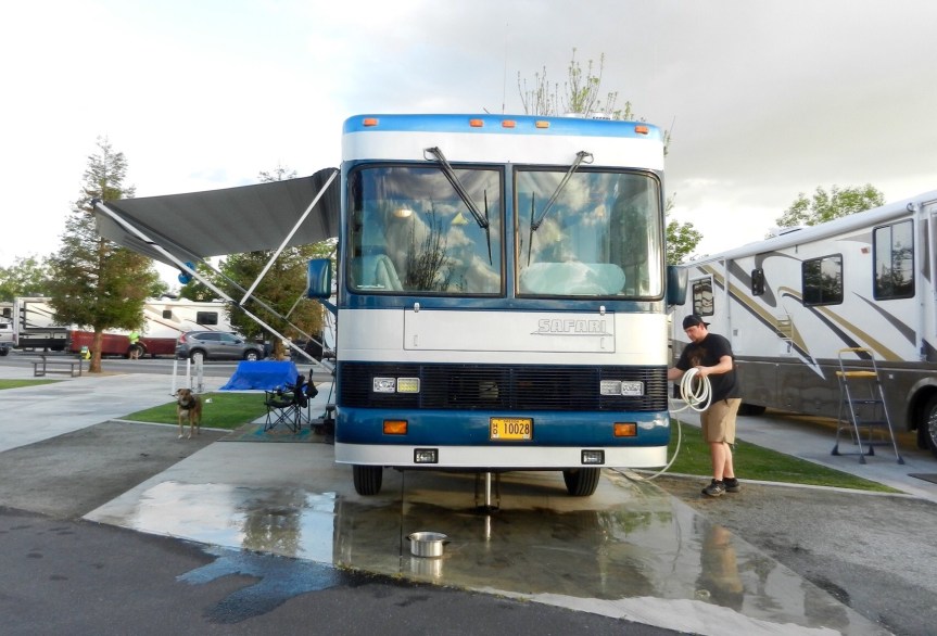 The park was called “A Country RV Park” and it lived up to its reviews. It was an exceptionally neat and tidy park with everything you would need for a stop over to clean up and replenish. Unfortuntatly, there isn’t much to do nearby. This park is probably the crowning jewel of Bakersfield. But all we really needed was to wash the graveyard of bugs off our windshield, do some laundry, and dry out. Mostly dry out. It seemed like everything we owned was full of water and we were ecstatic that it had finally stopped raining. When we got to Bakersfield we opened up every single exterior cabinet, pulled out all of our lawn chairs and carpets, and let everything take a moment to air out.