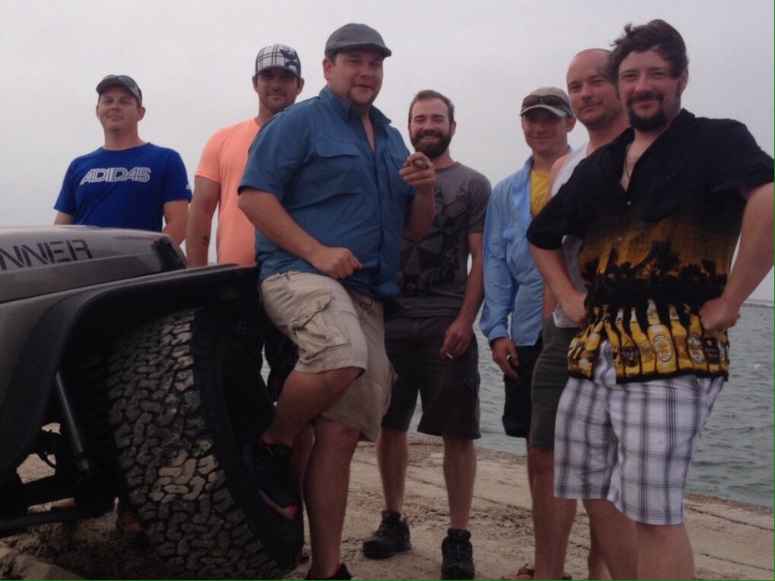 For their weekend they rented a big beach house in Port Aransas down on the Texas coast. The plan was to go gambling on one of the casino boats that go out into international waters, but they ended up just spending the weekend hanging out, drinking whiskey, driving the Jeep on the beach, and generally being a bunch of dudes doing dude things.