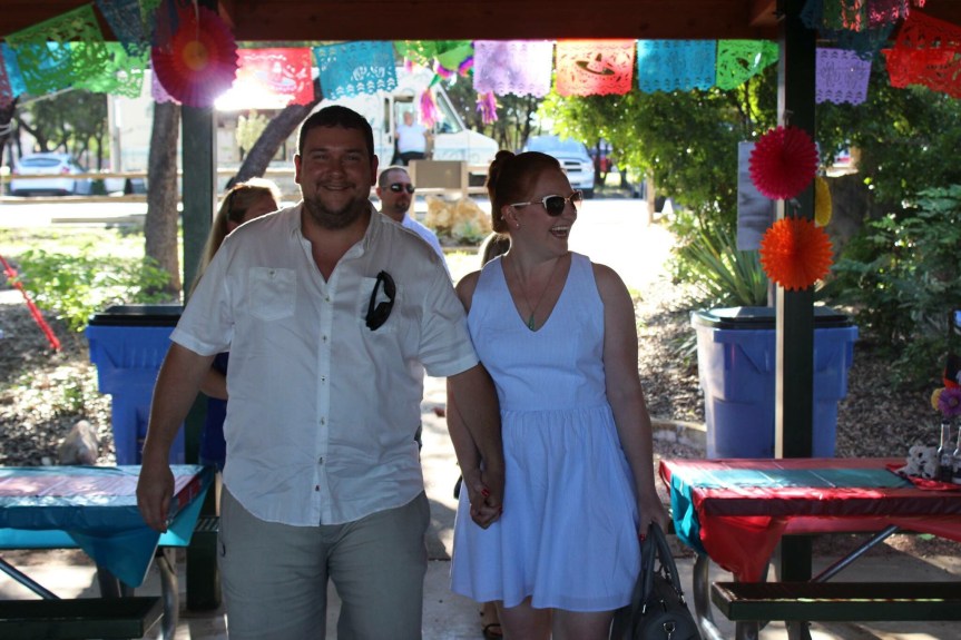 My cousin, Darci, of H-12 Outdoor Cafe, drove her food truck out to the Lakeway City Park to serve us a taco and quesadilla feast while Brandon’s step-dad, Skip, served us beer, sangria, and margaritas under the pavilion! There was even a pinata for the kids! Seriously! It was the perfect way to kick off the weekend.