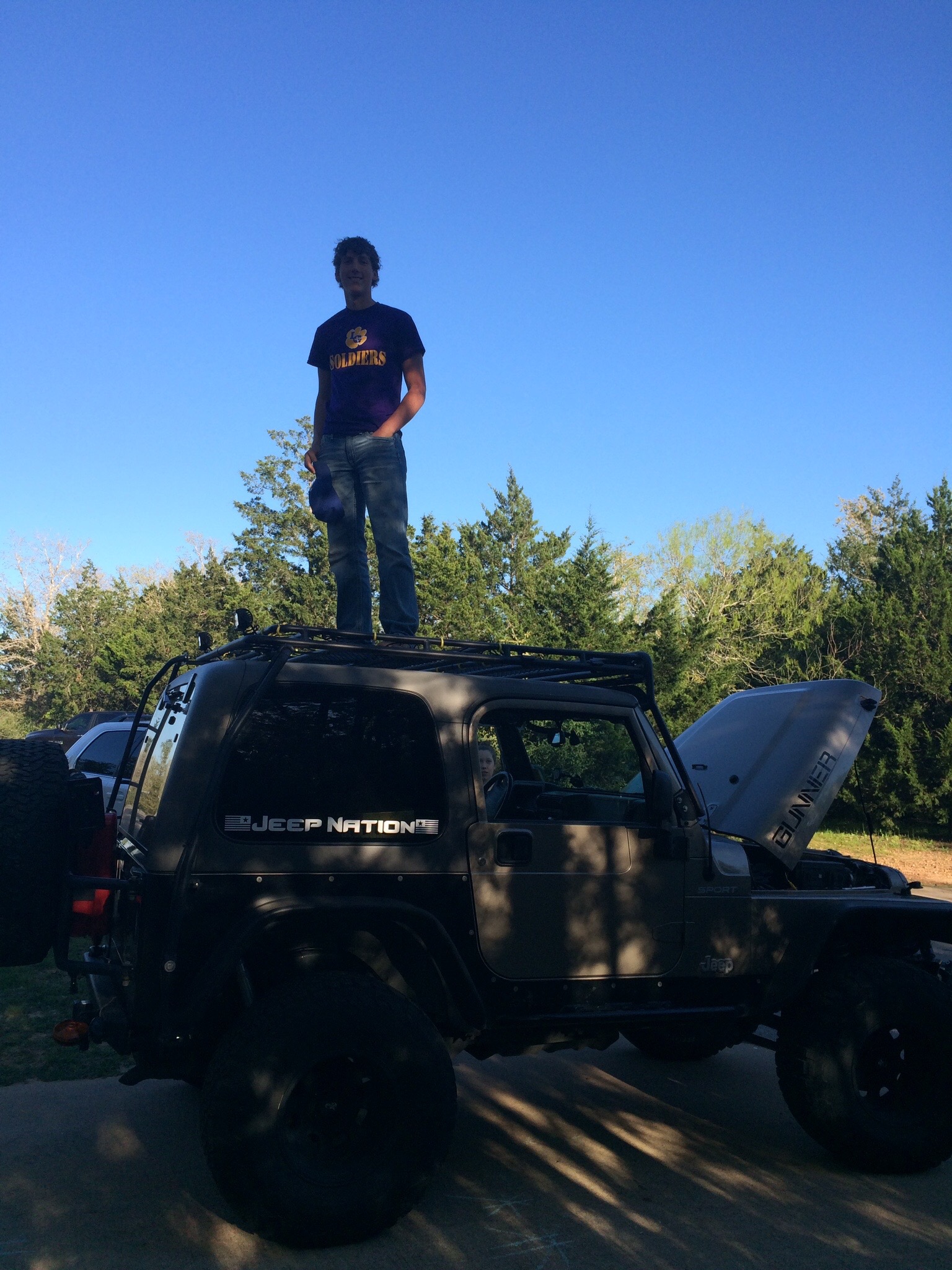 Brandon’s little brother posing with Gunner. Dylan is seventeen years old and now thinks his first car should be a Jeep! We agree!