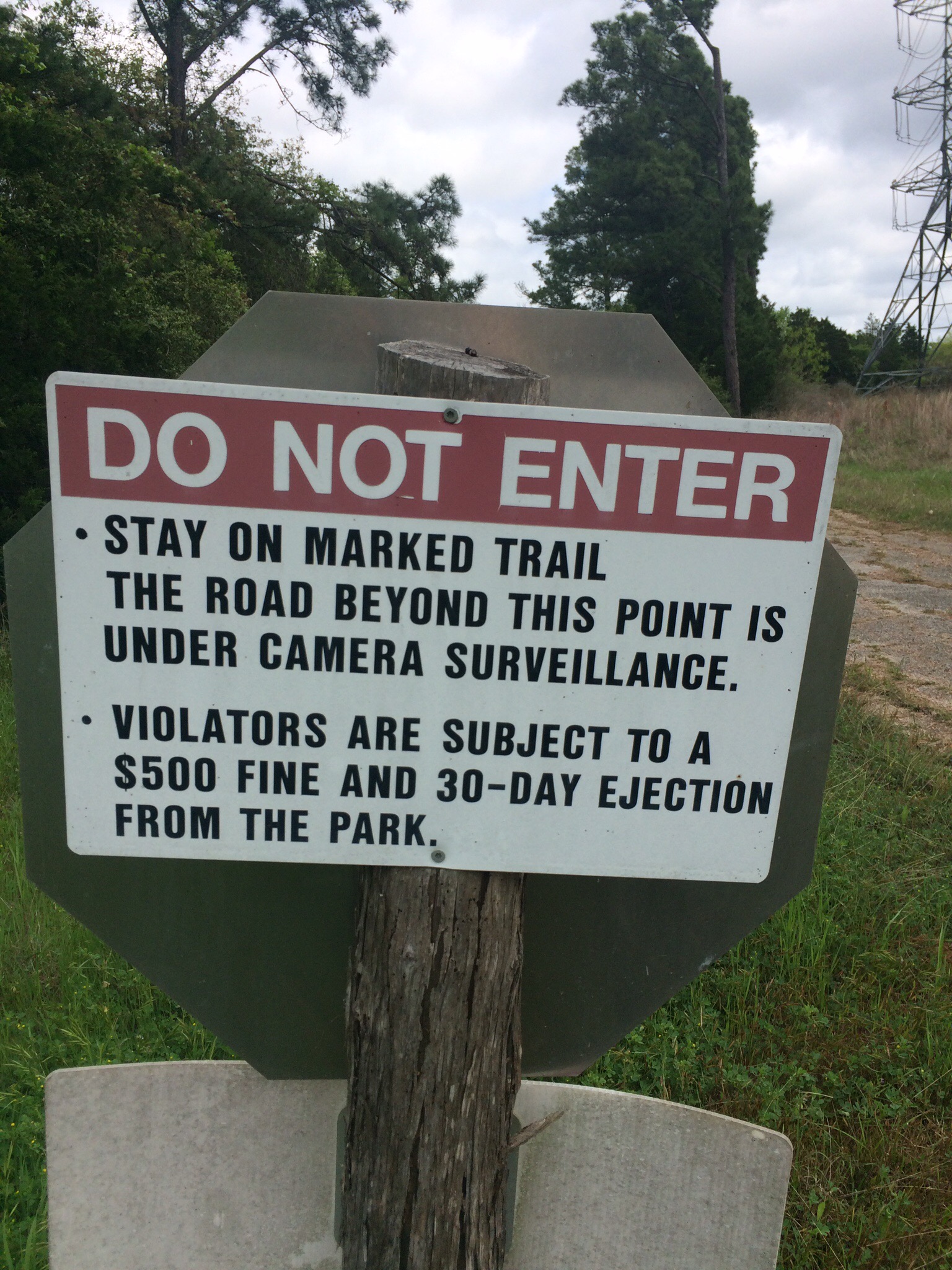 It was very easy to find the road and for the first mile I thought this trip was going to be a breeze. Then I came across the “Do Not Enter” signs. Apparently the road I was on was a private road owned by the electric company. The lake is a power plant lake and this is the road that goes to the dam. I had no idea because there weren’t any signs on the section of road where I entered with my bike. Oops. Unfortunately, I was now stuck. I couldn’t go backwards or forwards on the road. My only option was to use the bike trail that I found crossing the road nearby. The bike trail seems like an obvious choice from the beginning but I didn’t have a map or any idea how long the trail would be or where it would come out.