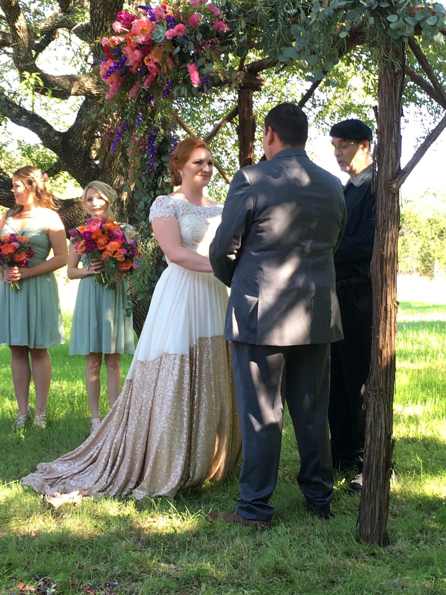 This is it! The moment we’ve been waiting for for 10 years! I’ve been told there wasn’t a dry eye in the crowd. I had always wanted an outdoor wedding and we got very lucky that the weather cooperated for us. There were flood level rains less than a week earlier!