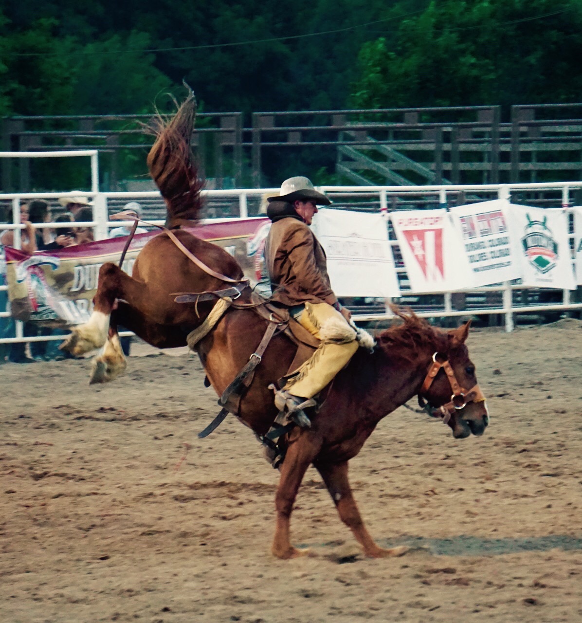 “See that guy there! He’s here to pick up men. No, not like that, like when they fall off!” (Referring to the bull fighters, whose job is to pull the contestants back to safety when they fall off and protect them from the hooves of pissed-off livestock.)