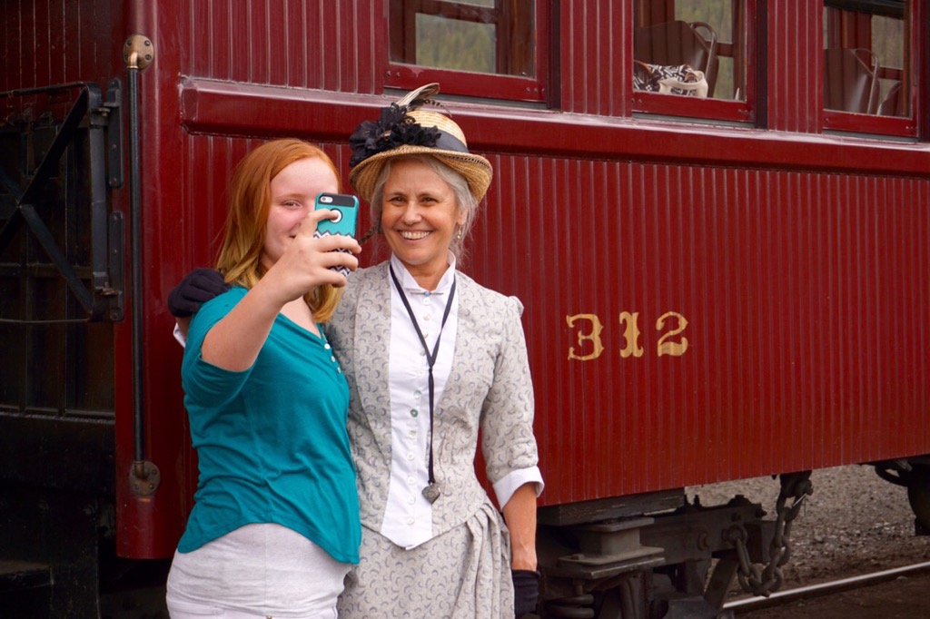 I saw this teenager ask to take a photo with one of the character actors on the train. The woman stayed in character the whole time. “What is a selfie? And what is that contraption you’re using to take the photo?”