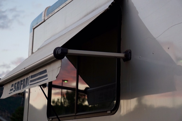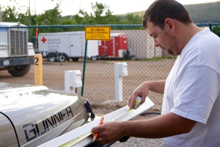 While at the dump station we noticed that the refrigerator vent cover on our roof was missing. It must have been blown off by the wind on the drive to Durango. Being a Sunday, all the stores that sell RV parts were closed but Brandon was able to build his own vent cover using a piece of plastic gutter and two end caps. So handy!