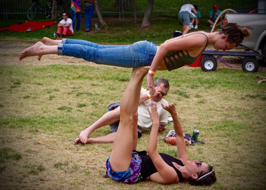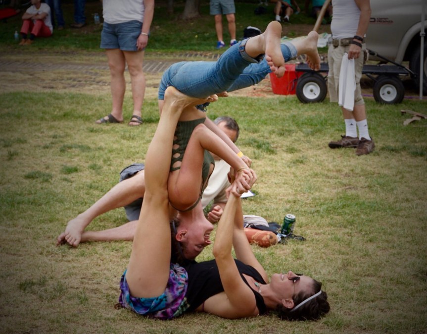 It was a nice event with lots of booths with local resources relevant to the LGBT community. There were also drag queens in full regalia. Apparently, there had been a big drag show fundraiser the night before. We weren’t at the festival long before it started to rain and we retreated to our car. My favorite part was watching these two women doing very impressive acrobatic yoga. It clearly took a lot of strength but they made it look very graceful.