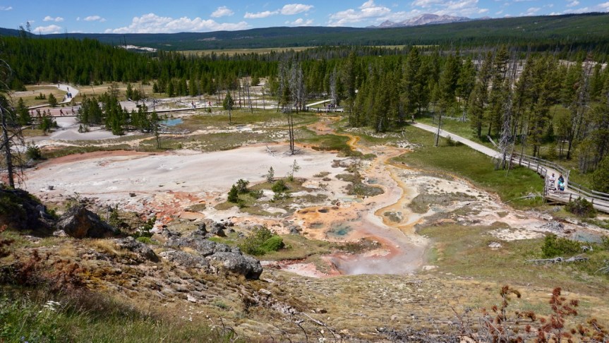 We turned left at the Madison Campground and made our way north to Norris. This section is technically part of the southern loop and contains a number of geo-thermal springs. We had never seen anything like it before so we stopped at everything. Before long we realized that we had only driven 20 miles but had been in the park for three hours! We had to keep moving if we were going to make it around the loop before dark.