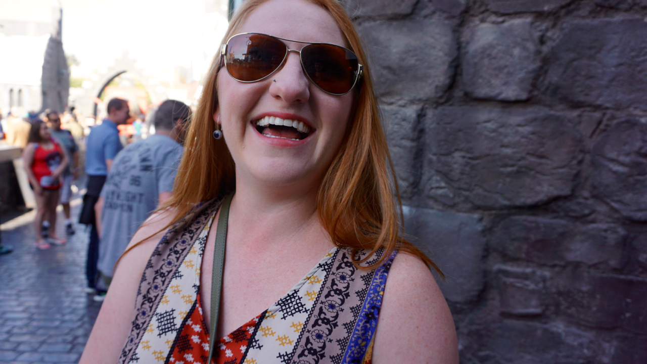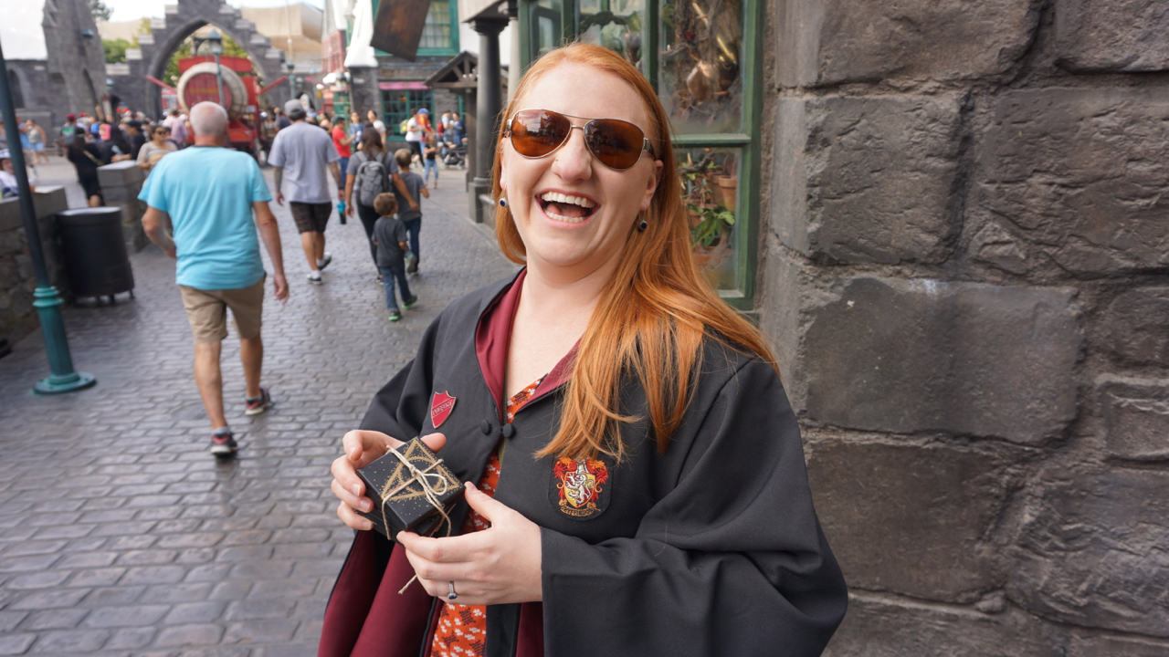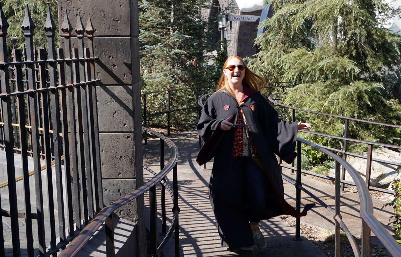 Right before we left Hogsmeade something magical happened. A woman stopped me and said, “Hey, I just noticed your robe, and your prefect badge, and I saw you taking pictures of the ATM just because it said Gringotts. You’re a huge Harry Potter fan, aren’t you?”
