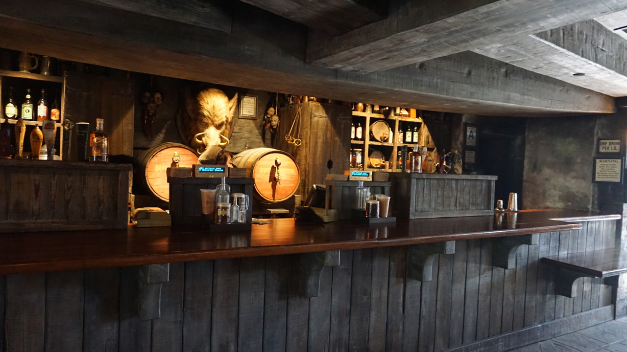 The Hogshead Pub is directly attached to the Three Broomsticks. There is a tiny seating area in the pub itself, but it seems like the idea is grab your beer in the pub and bring it back to your table at the Three Broomsticks. Like Zonko’s Joke Shop, the Hogshead really should have been its own shop. Yes, the Harry Potter story was intended for children, but the first generation of children to read Harry Potter are now in their 20s and 30s. And we want to enjoy a drink at the local pub and imagine we are having a heated debate with Hagrid about the pros and cons of keeping dragons as pets.
