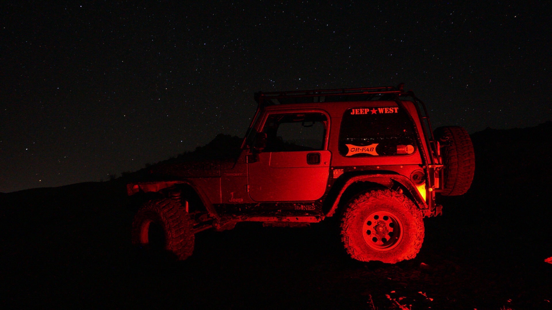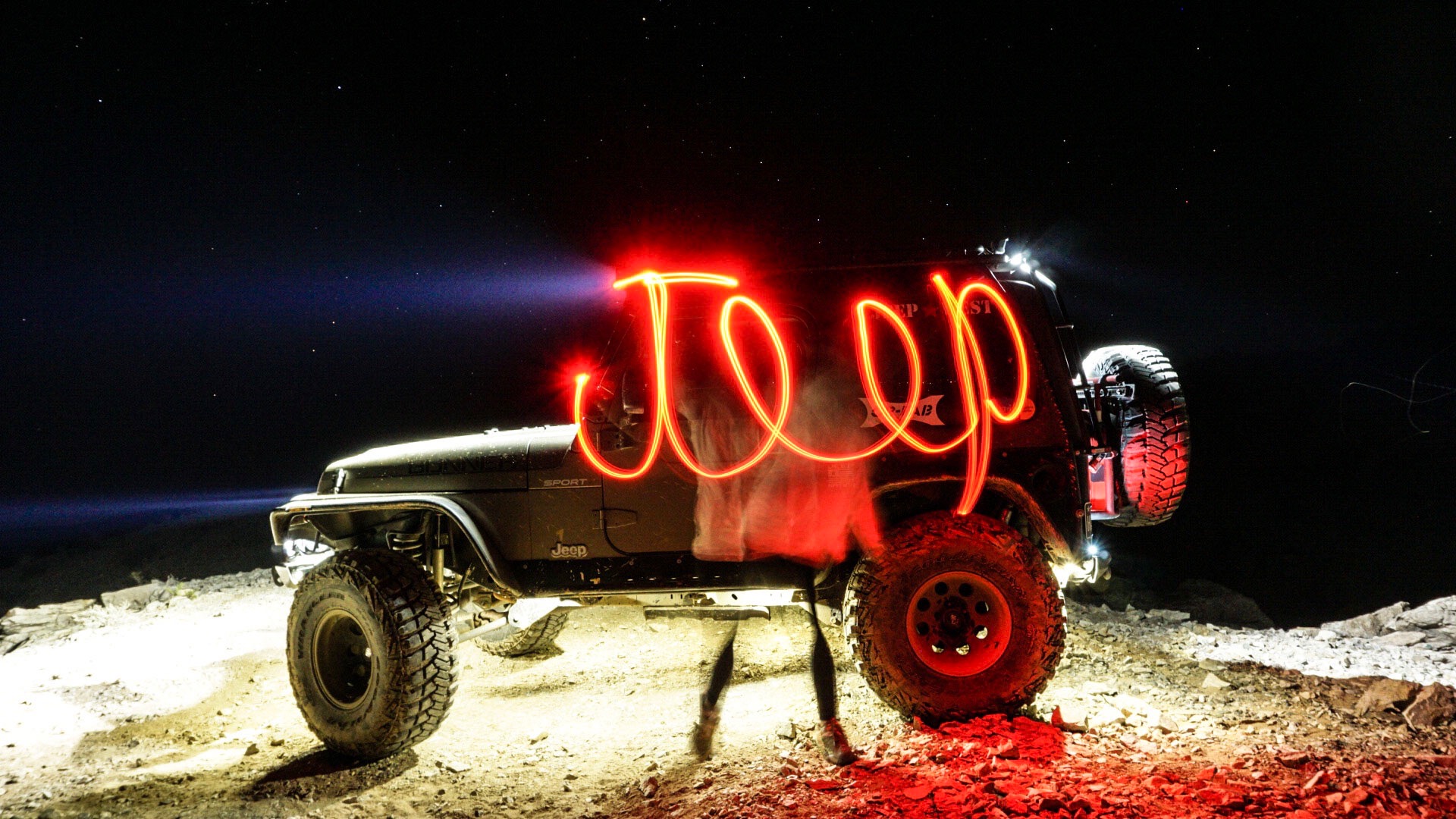 I used the red light setting on my headlamp to spell out “Jeep” during a long exposure on the camera. I had to write backwards, which took a few trys to get right.