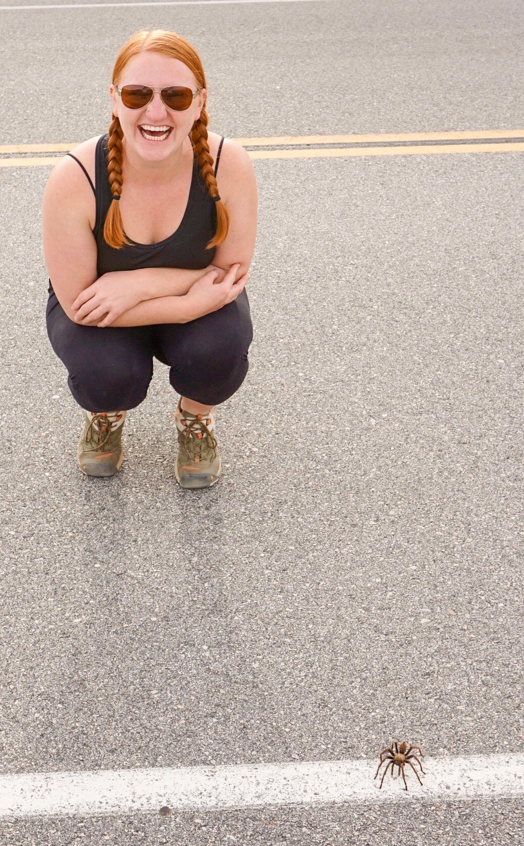 We didn’t get nearly as close to the spider as the photo below suggests. We kept a safe and respectful distance. We didn’t want to freak the little guy out. I had also heard that they jump, which might have really freaked me out. Although these spiders will bite people, they are not deadly. I read that most people react similarly to a bee sting.