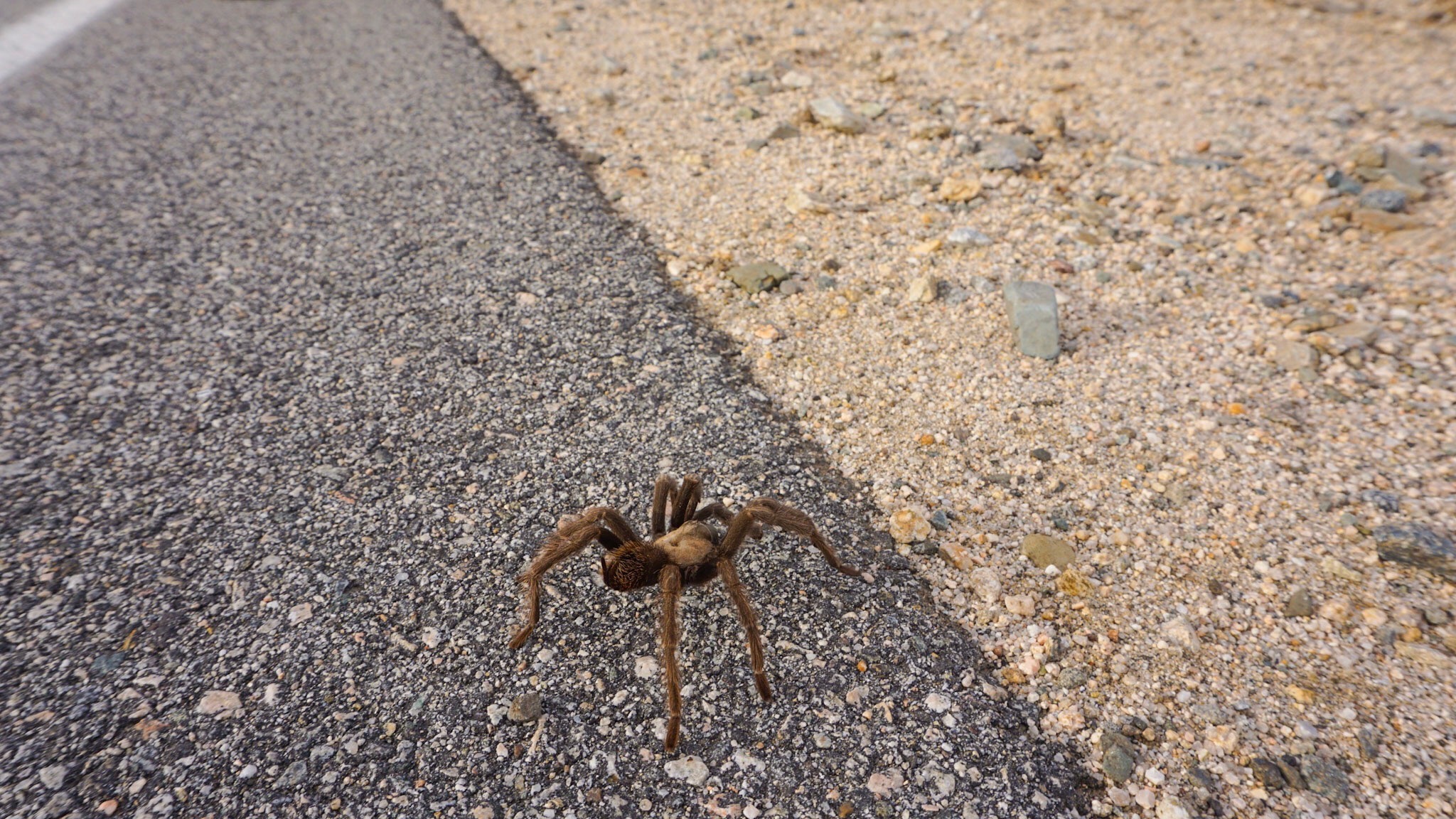On our way back from the Cholla Garden we saw a white car pulled over on the side of the road and two people staring at the ground. We too saw the little brown creature and pulled over immediately. They quickly waved us over, just as excited as we were to actually find one of the elusive Joshua Tree tarantulas! Funny enough, they had also driven all they way from the Pacific Northwest. They were from Seattle and this was their first trip to the deserts of the southwest.