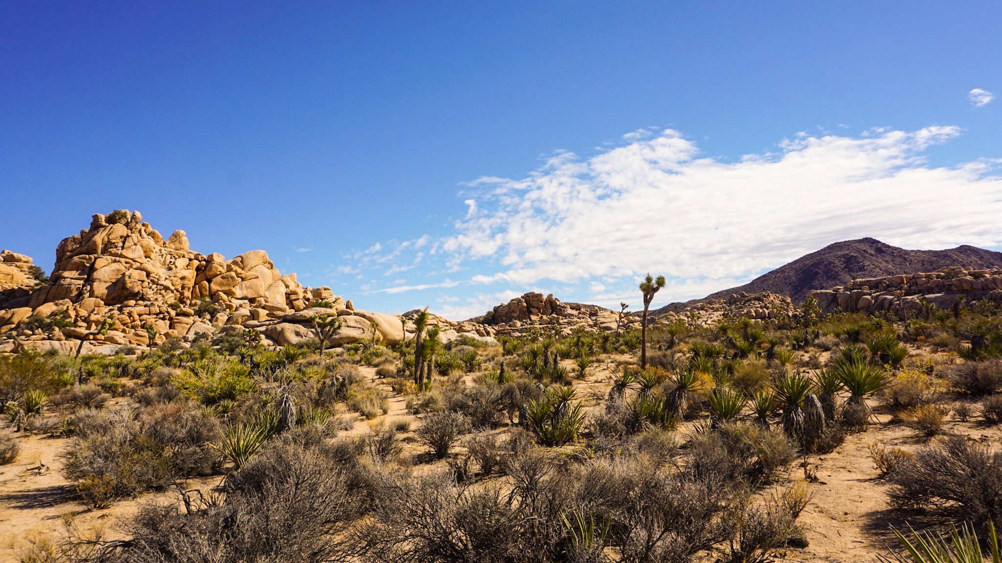 The funny thing about Joshua Tree National Park is that Joshua Trees are not found within the entirety of the park and this is not even the only place you can find Joshua Trees. They actually grow throughout much of the Mojave Desert. Driving from LA you will start to see Joshua Trees long before you get anywhere close to the park.