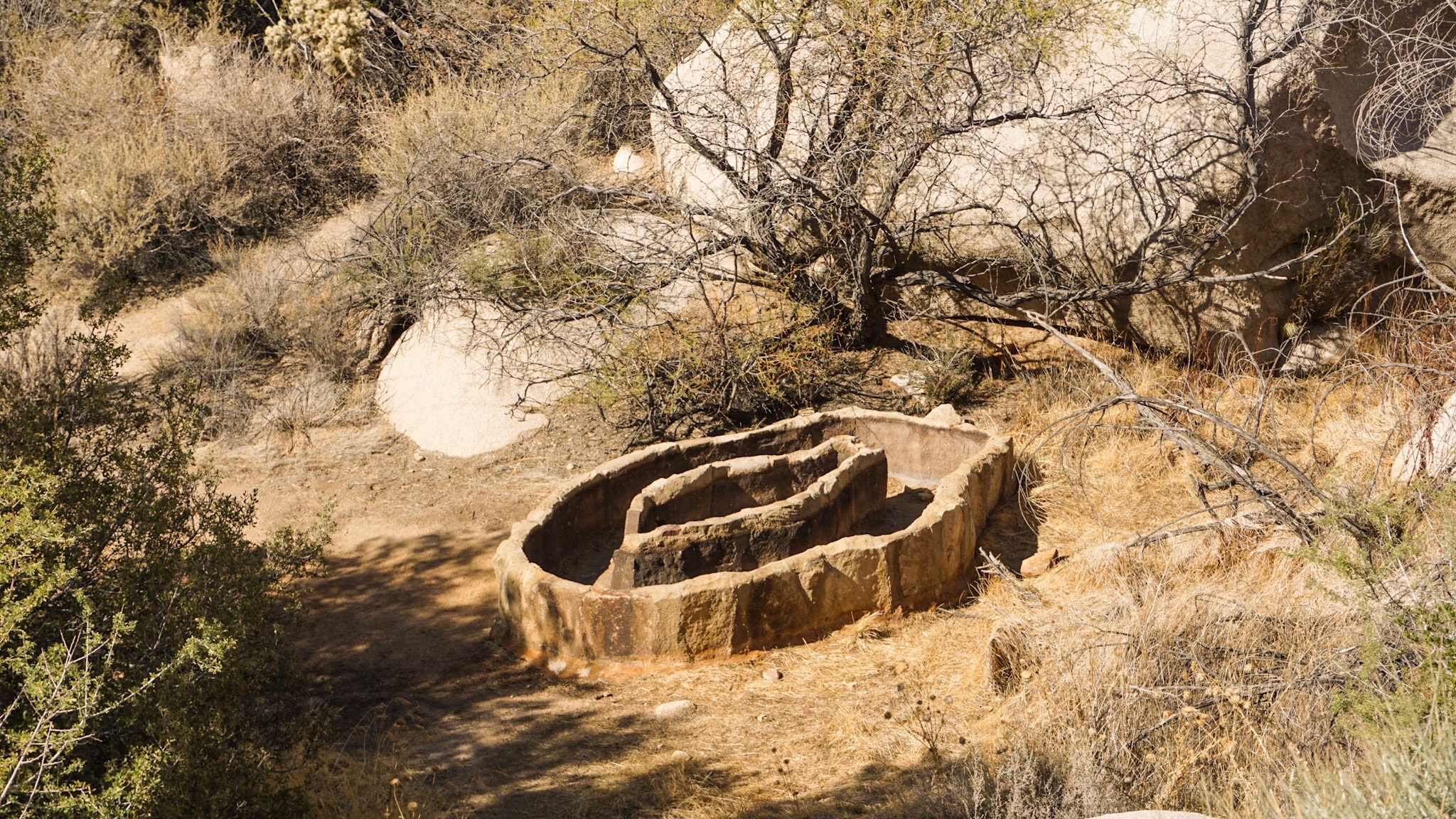 Something that makes Joshua Tree particularly interesting is the history of people who made use of this arid landscape. Throughout the park you can find evidence of humans, both ancient and recent. There are wells built by ranchers, rusty cans and pieces of metal left by the cattle thieves, and petroglyphs on the rock walls from Native American tribes.