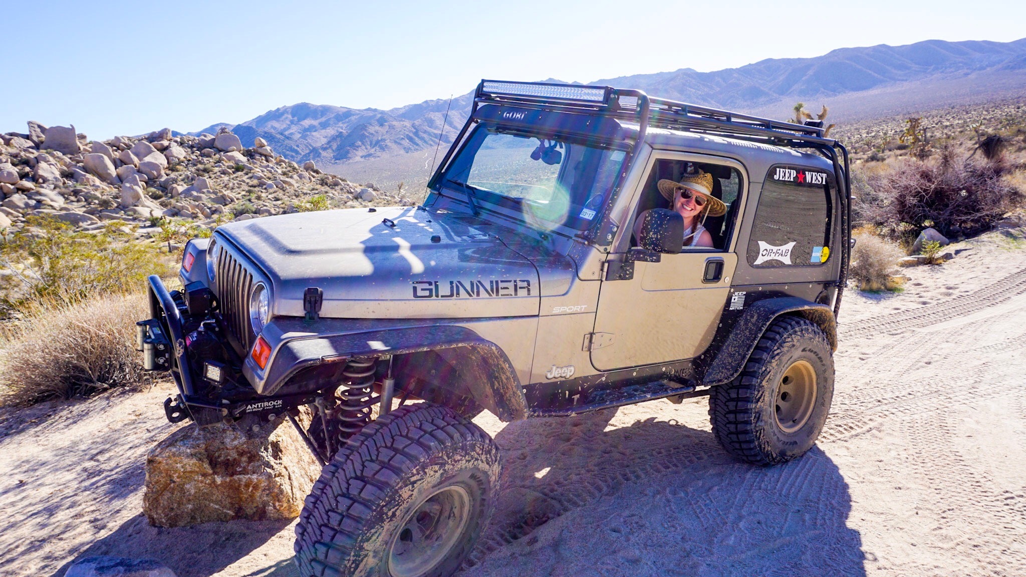 I was already behind the wheel when we made this stop so Brandon encouraged me to drive up onto the rock and “flex” as they call it in the Jeep world. This was my first time.