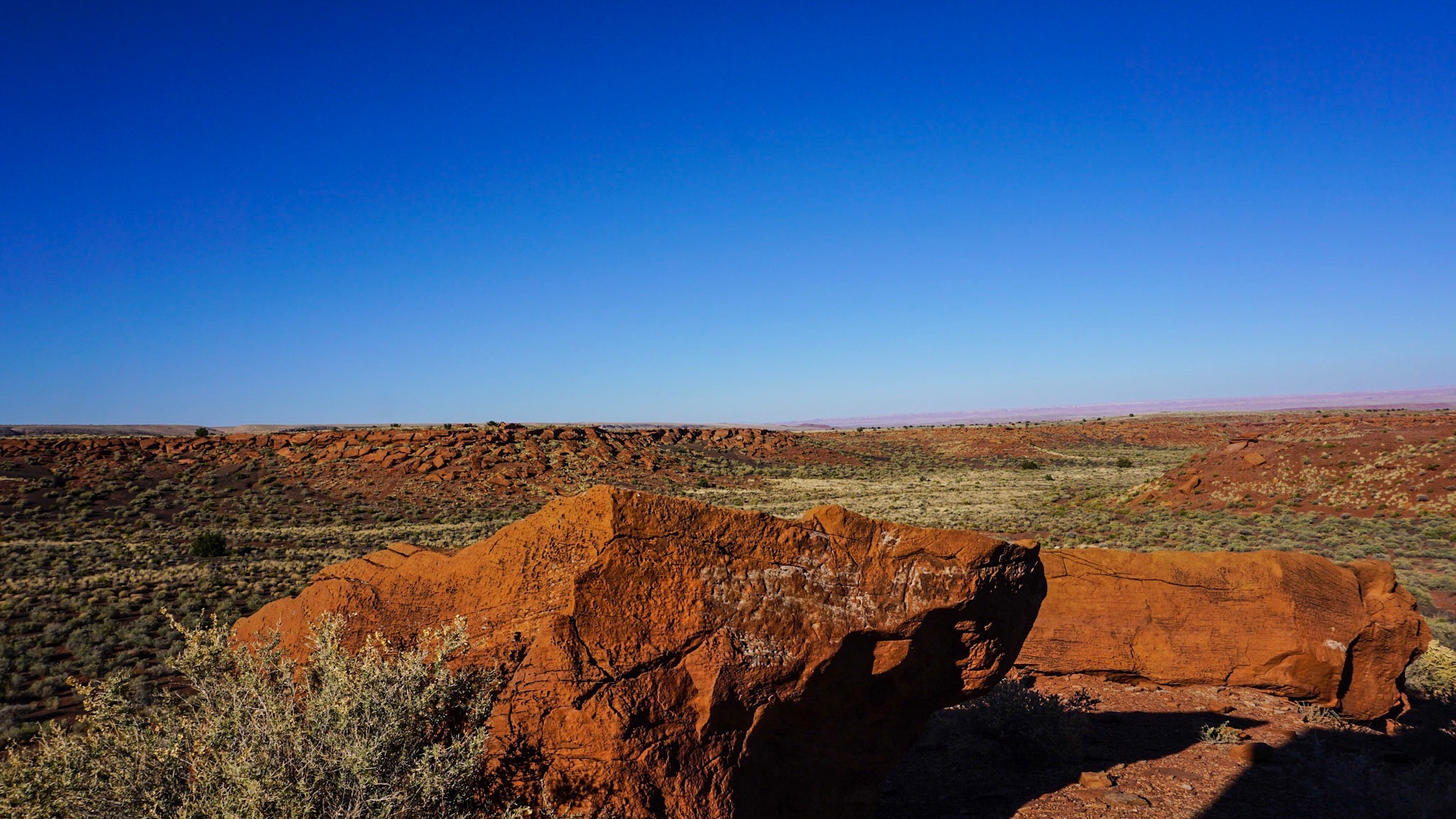 There are mile markers along the trail but they are not particularly easy to spot. However, you will know you’ve found the right place when you see a dirt parking area on the left, right before a gate. If you continue beyond the gate you can drive all the way to Interstate 17. Look for a trail directly beyond the parking area and climb up to the top of the rocky outcrop. The view is incredible, but don’t expect to have it all to yourself. This is a very popular stop along the trail. Nearly all the Jeep tours come by here.