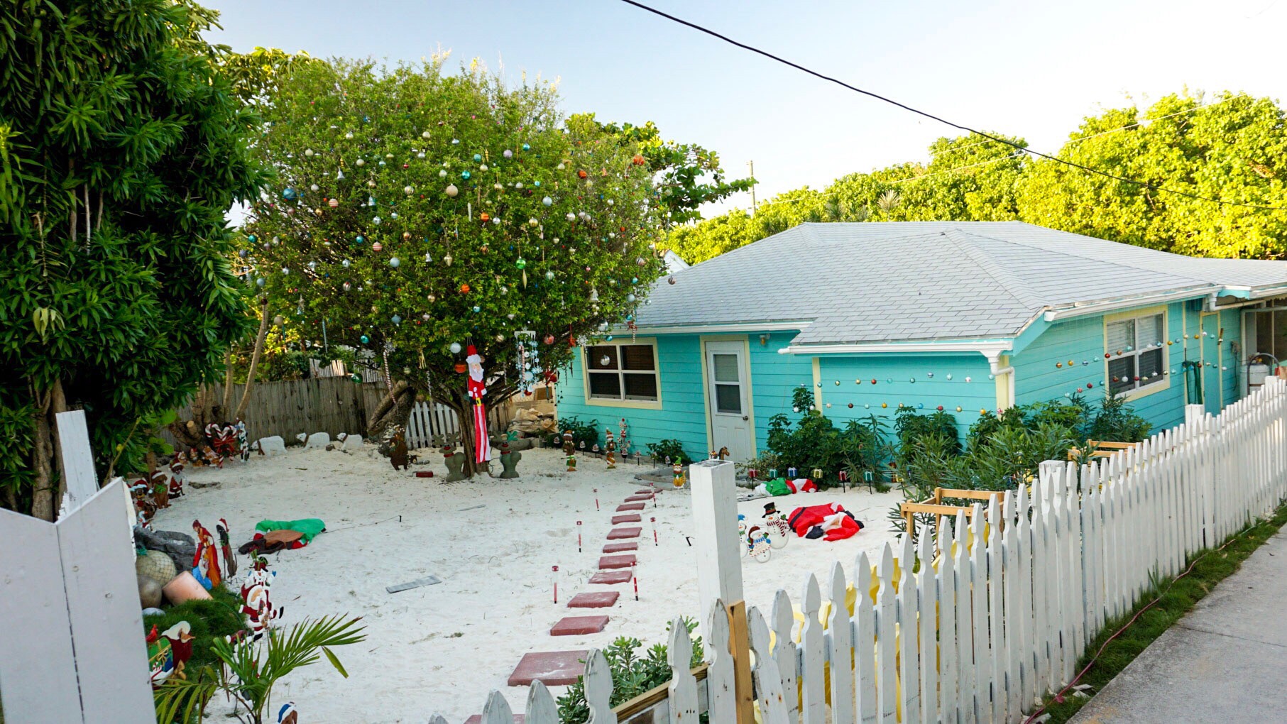 While wandering we found what must be the most festive house in all of the Abacos. These guys had actually carted in fresh sand from the beach and spread it over the yard to look like snow! It must have taken them days to decorate this place but it was so worth it!