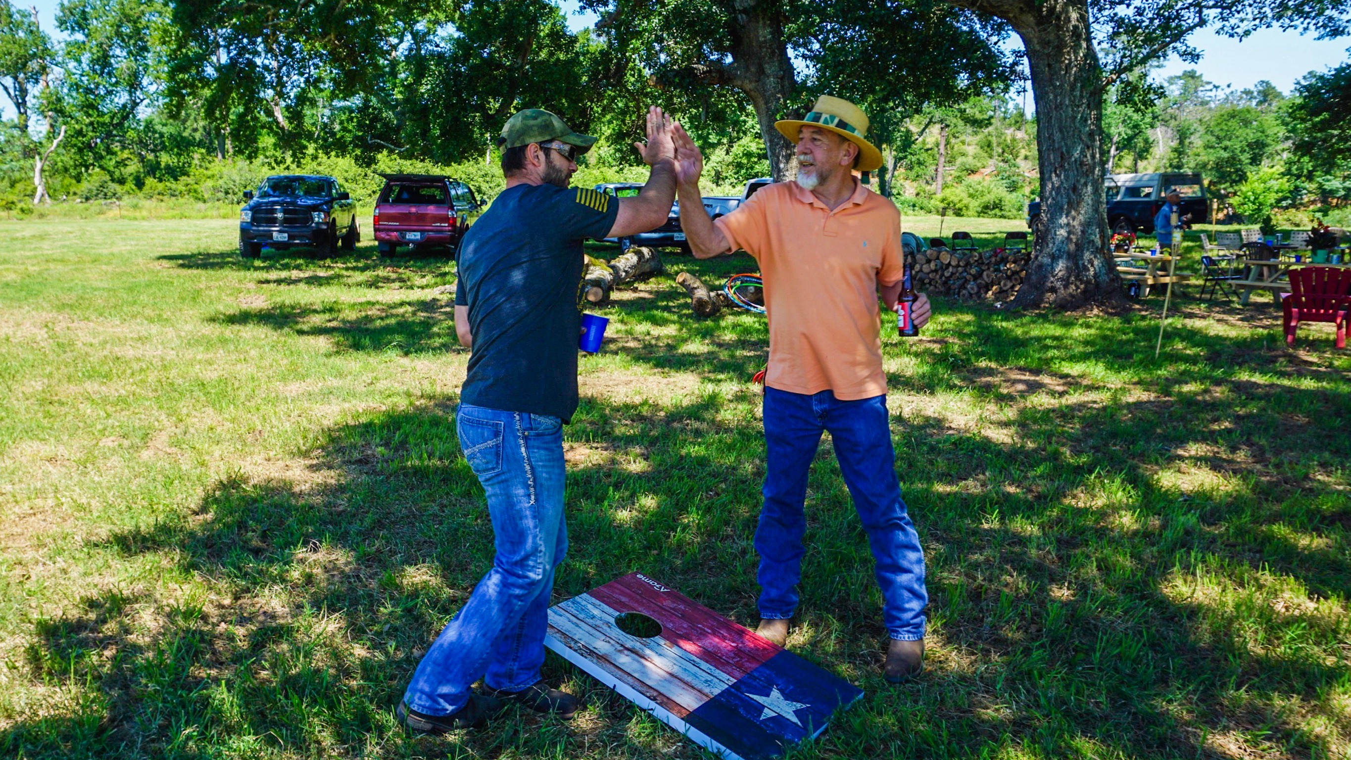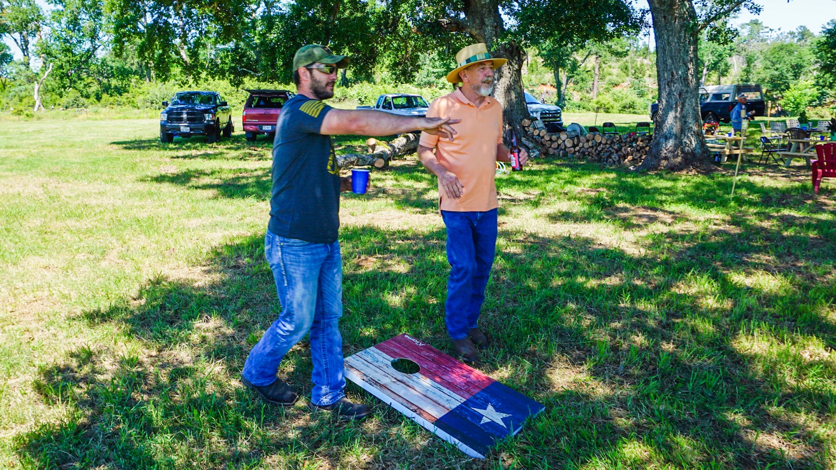 The eternal battle between friends — Aggies vs. Longhorns. Ironically, neither of them graduated from either school. I suppose it’s just a football thing.