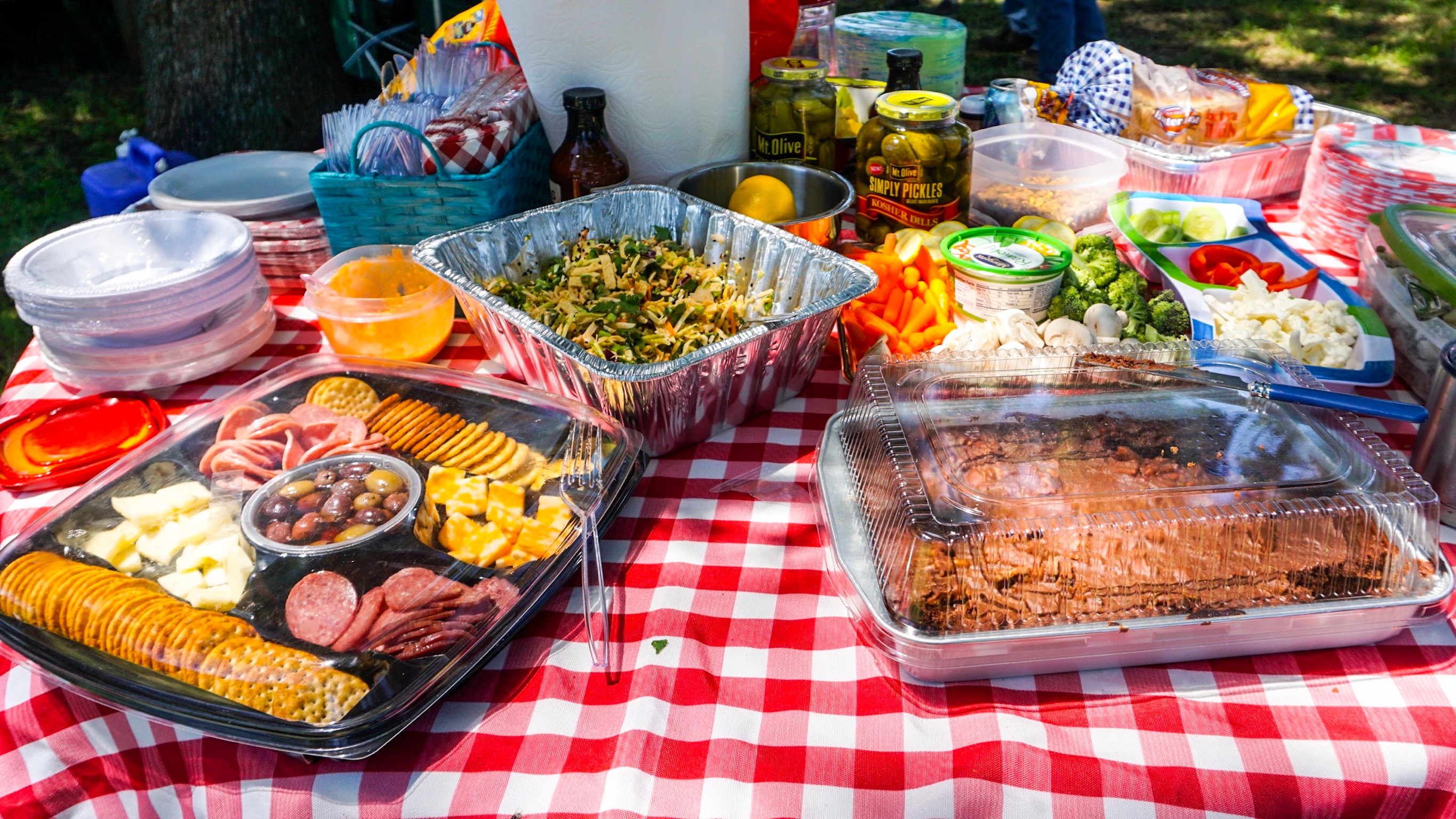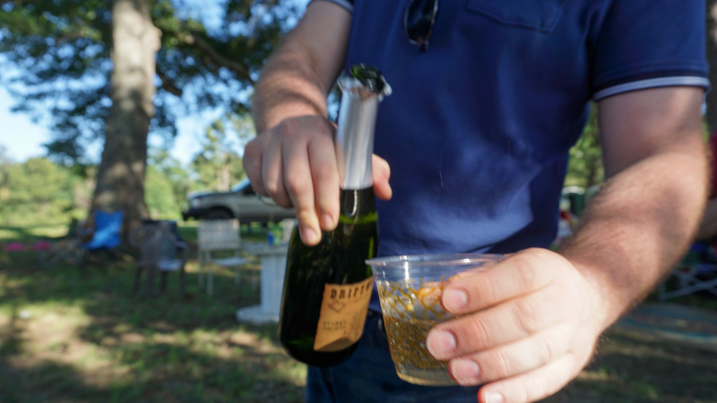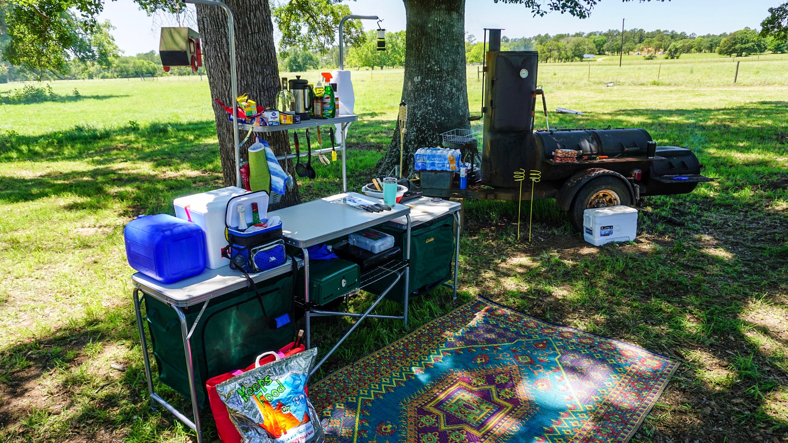 Brandon set up what he likes to call “BBQ Stadium”, basically an overly elaborate cooking station and where Brandon is most likely to be found at a party. He doesn’t cook much on a day-to-day basis but really enjoys going all-out for a party. If you look closely, you’ll find two Coleman propane grills, a first aid kit, stick-in-the-ground beer holders, and two types of whiskey. This man comes prepared.