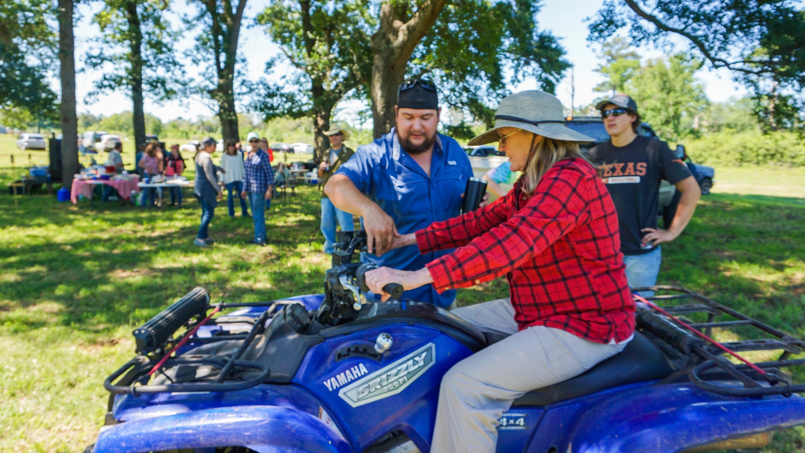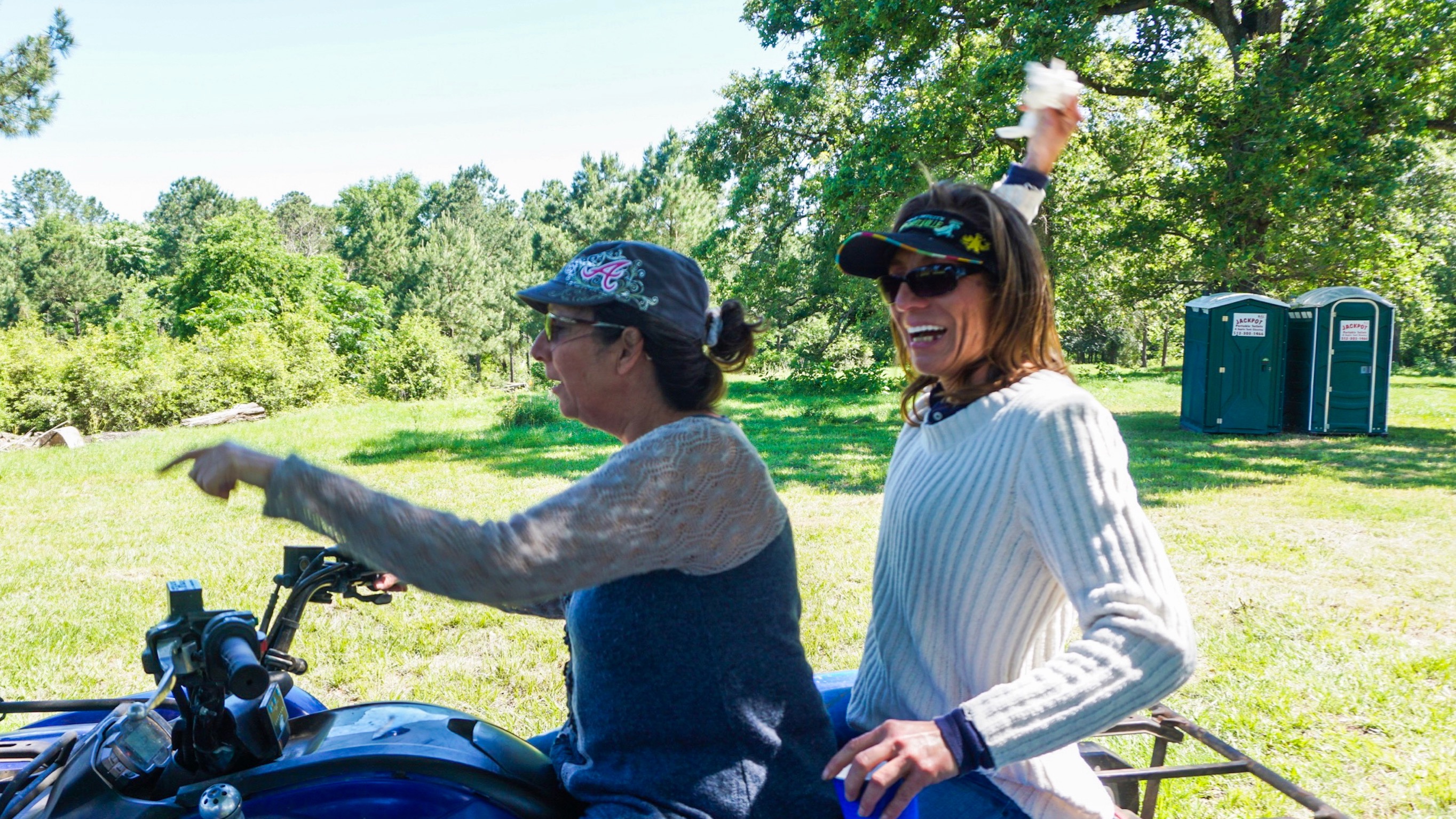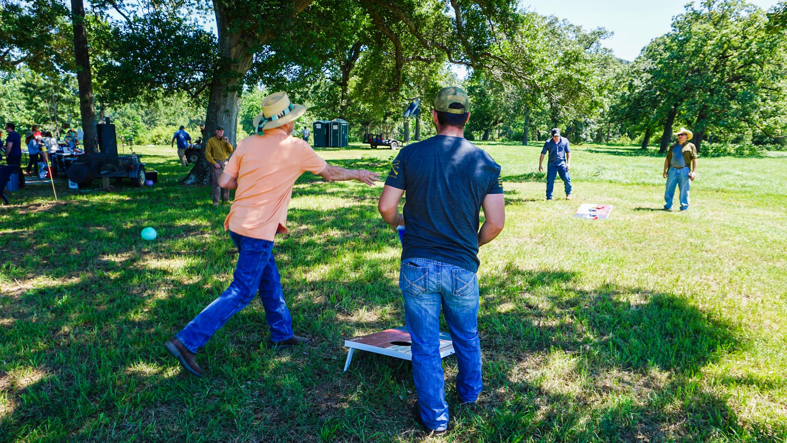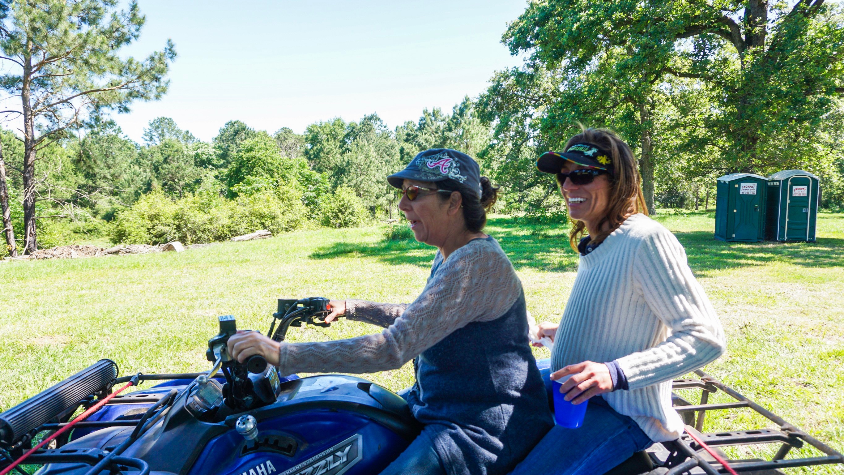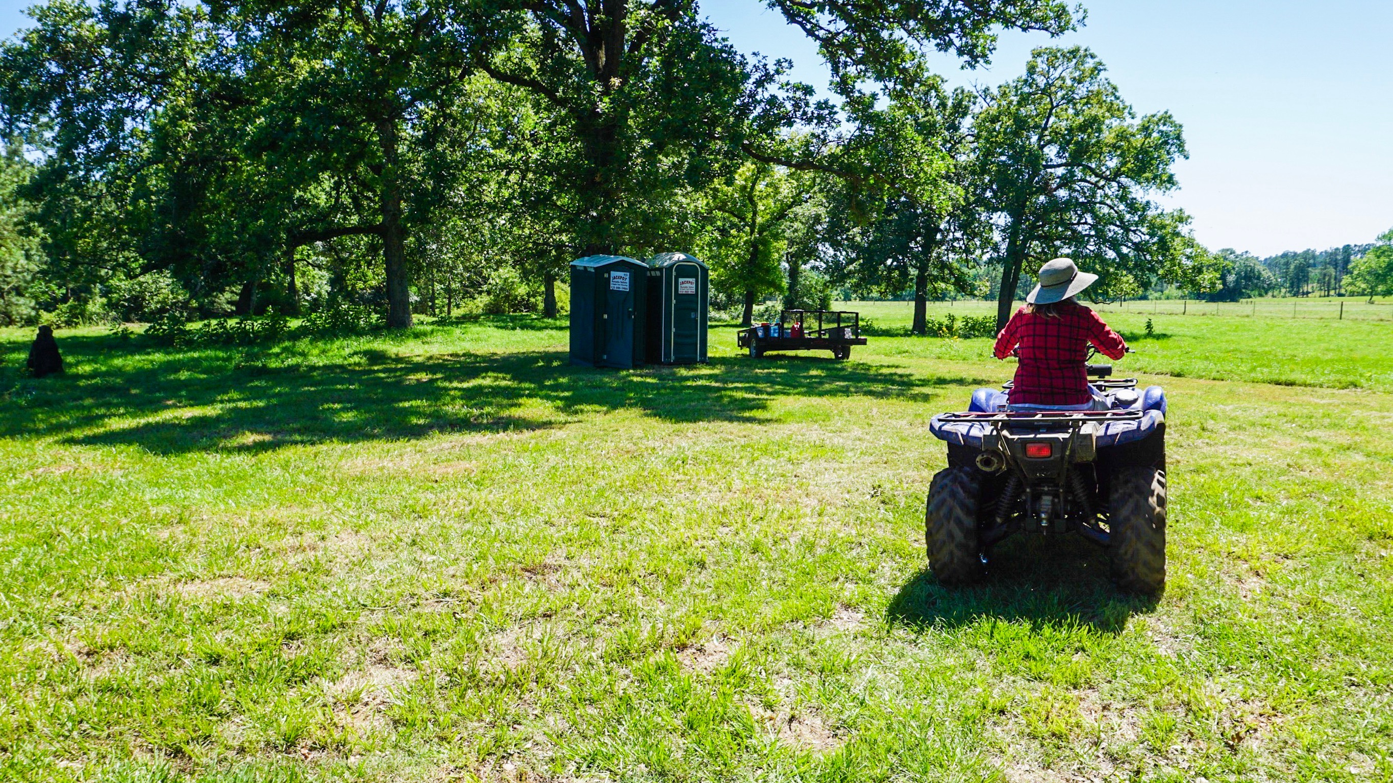 The biggest hit of the day were probably the four-wheeler tours of the property. The front half of our land is accessible from the main road. The back half is across the creek and requires going over a low water crossing. You can make the crossing in a truck, Jeep, or SUV, but it’s much more fun on a four-wheeler. We brought ours and our friend James brought his. Throughout the afternoon Brandon gave driving lessons and let the partygoers loose on the back half of the property. Everyone had a blast.
